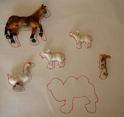 This then led her to the idea of drawing around her toys, resulting in an impromptu matching game.