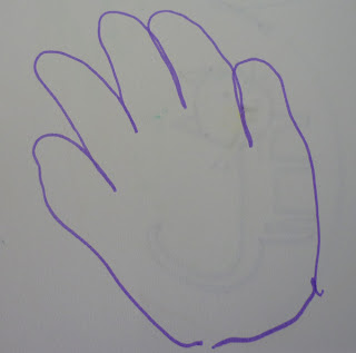 There has been an awful lot of drawing around our hands going on lately. Immy loves drawing around my hand and is always asking me to draw around hers.