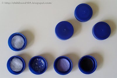 Great ideas, hold onto the lids too, as kids get older they become useful for games of draughts, you can print small pictures on a4 page, laminate it and play find the matching picture (similar to your matching textures game) and a # for naughts and crosses on a page